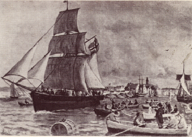 It was a grand Sesquicentennial Observance that had been a three month voyage back in 1825, when the ships had finally entered Muskegon Harbor. The sloop "Restauration" had carried fifty-two Norwegians, who had set sail for a new life in America. Starting at Stavanger, Norway, on July 4, 1825. They arrived in New York Harbor on October 9, 1825.